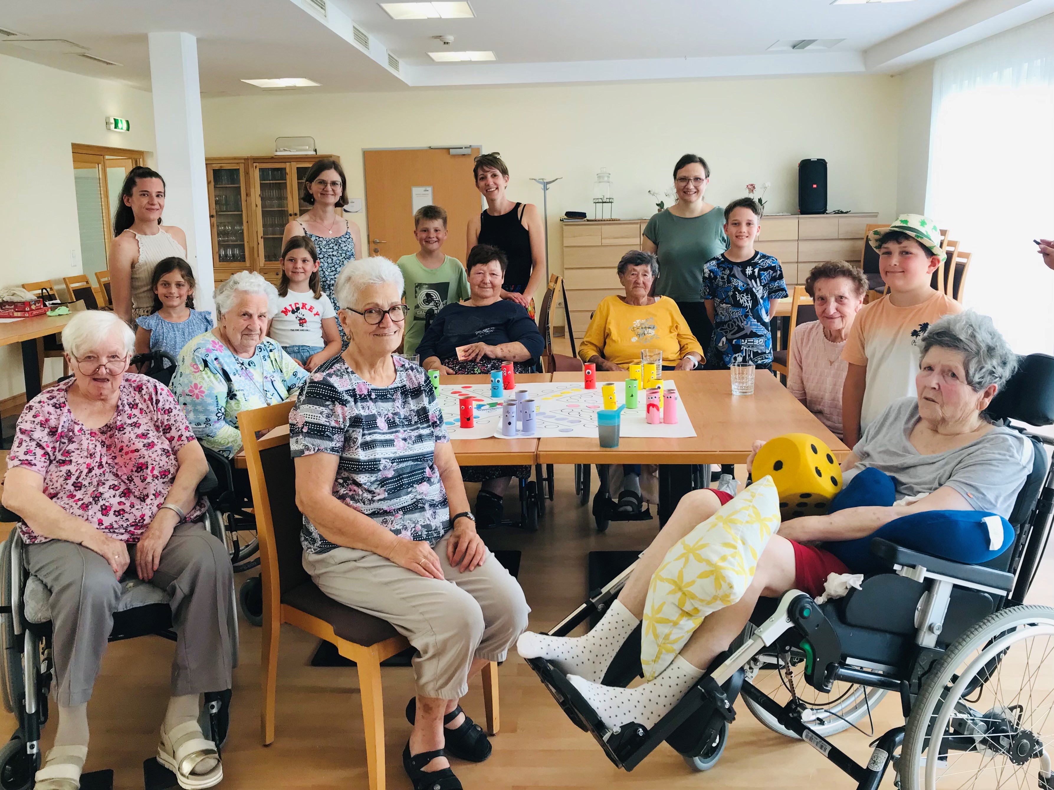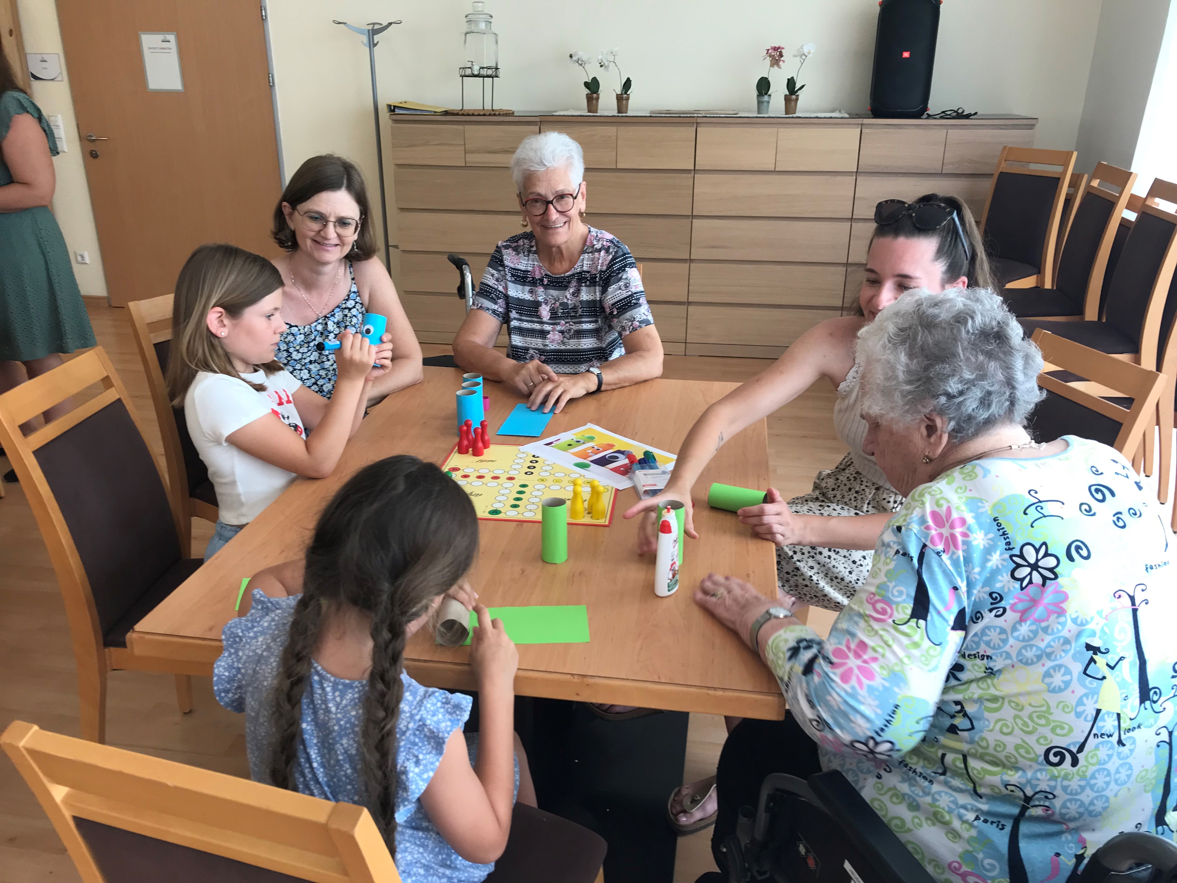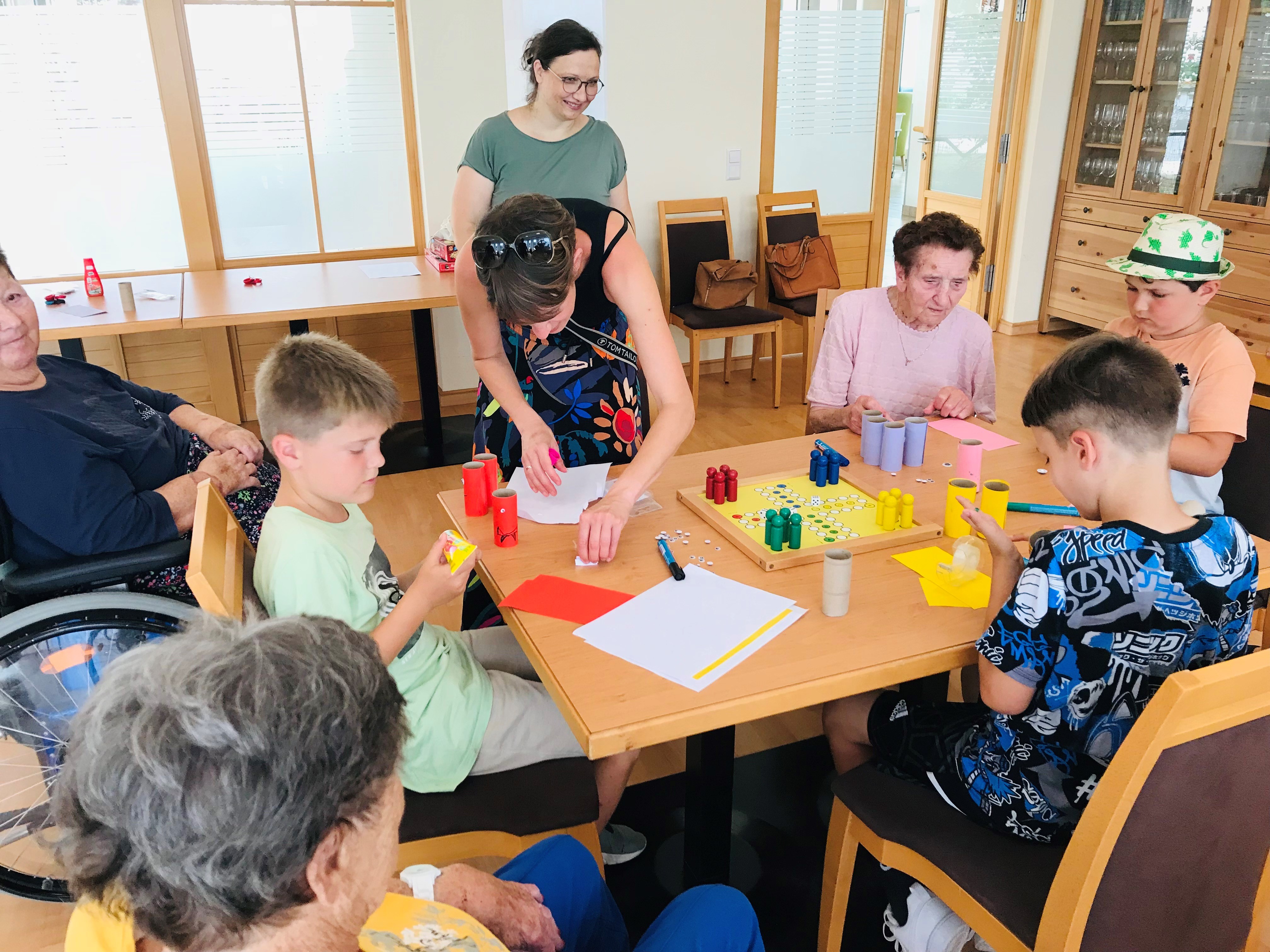 Die Bewohner:innen des SeneCura Sozialzentrums St. Veit in der Südsteiermark erhielten kürzlich besonderen Besuch der Erstkommunionsgruppe aus Weinburg. Gemeinsam bastelte Jung und Alt an einem überdimensional großen „Mensch ärgere dich nicht“. Mit viel Liebe zum Detail wurde alles von den bunten Kegelfiguren bis hin zum „Spielebrett“ selbstgebastelt. Als das Spiel vollendet war, konnte der Spielespaß beginnen und die Erstkommunionskinder sowie die Bewohner:innen zeigten, was sie konnten. Der gemeinsame Spiele- sowie Bastelnachmittag sorgte für viel Gelächter und grandiose Stimmung im Sozialzentrum.