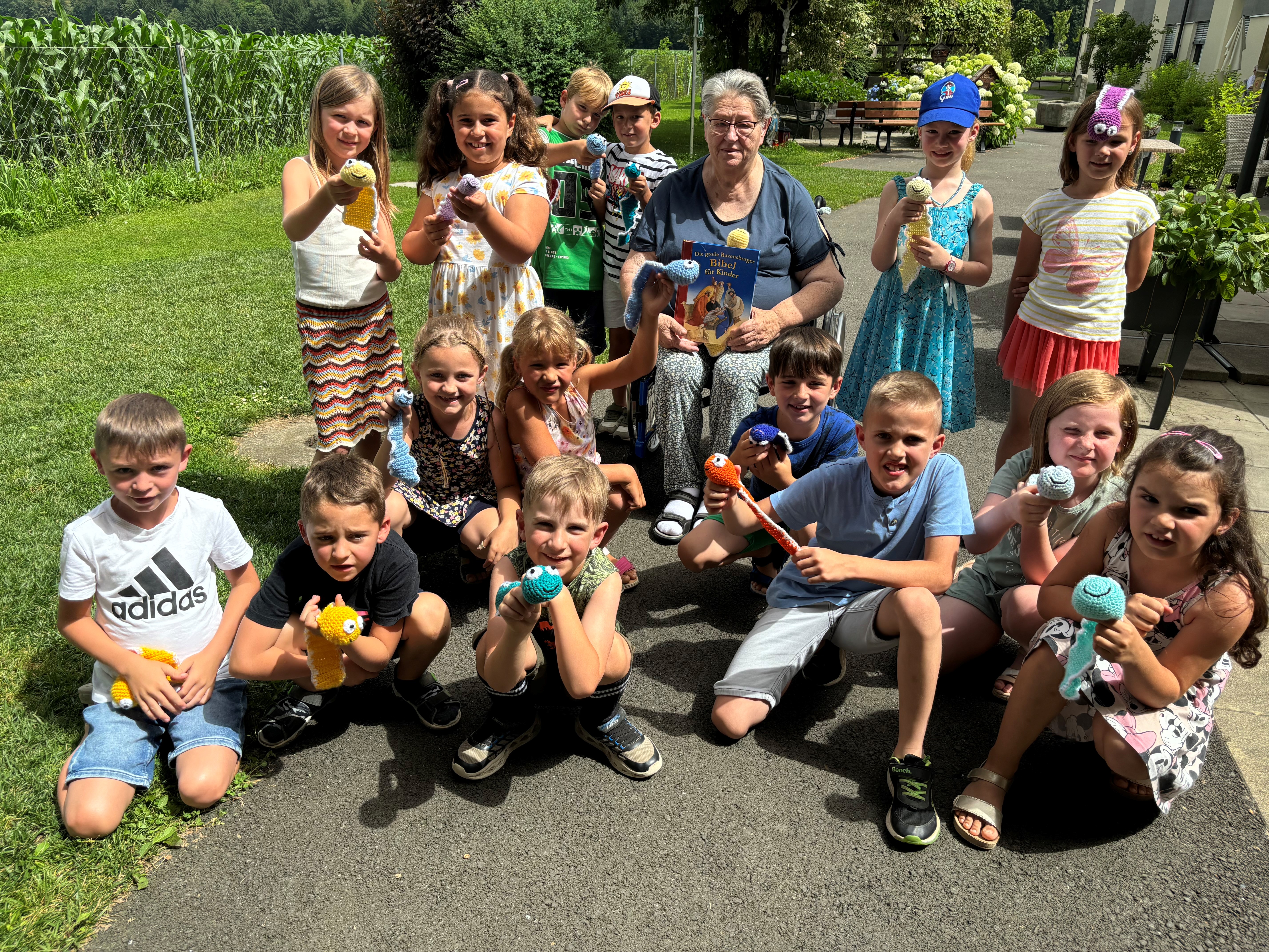 Anlässlich der Solidarity Action machten es sich 10 Bewohner:innen des SeneCura Sozialzentrums St. Veit in der Südsteiermark im Häkelzirkus kürzlich zur Aufgabe, Lesezeichen „Bücherwürmer“ mit viel Liebe zum Detail zu häkeln. Im Rahmen von Lesestunden am 19. und 27. Juni 2024 wurden die Bücherwürmer an die Schüler:innen von zwei 1. Klassen der Volksschule St. Veit am Vogau voller Stolz übergeben. Die Schulkinder haben sich sehr über die Spende der selbstgehäkelten Lesezeichen gefreut.