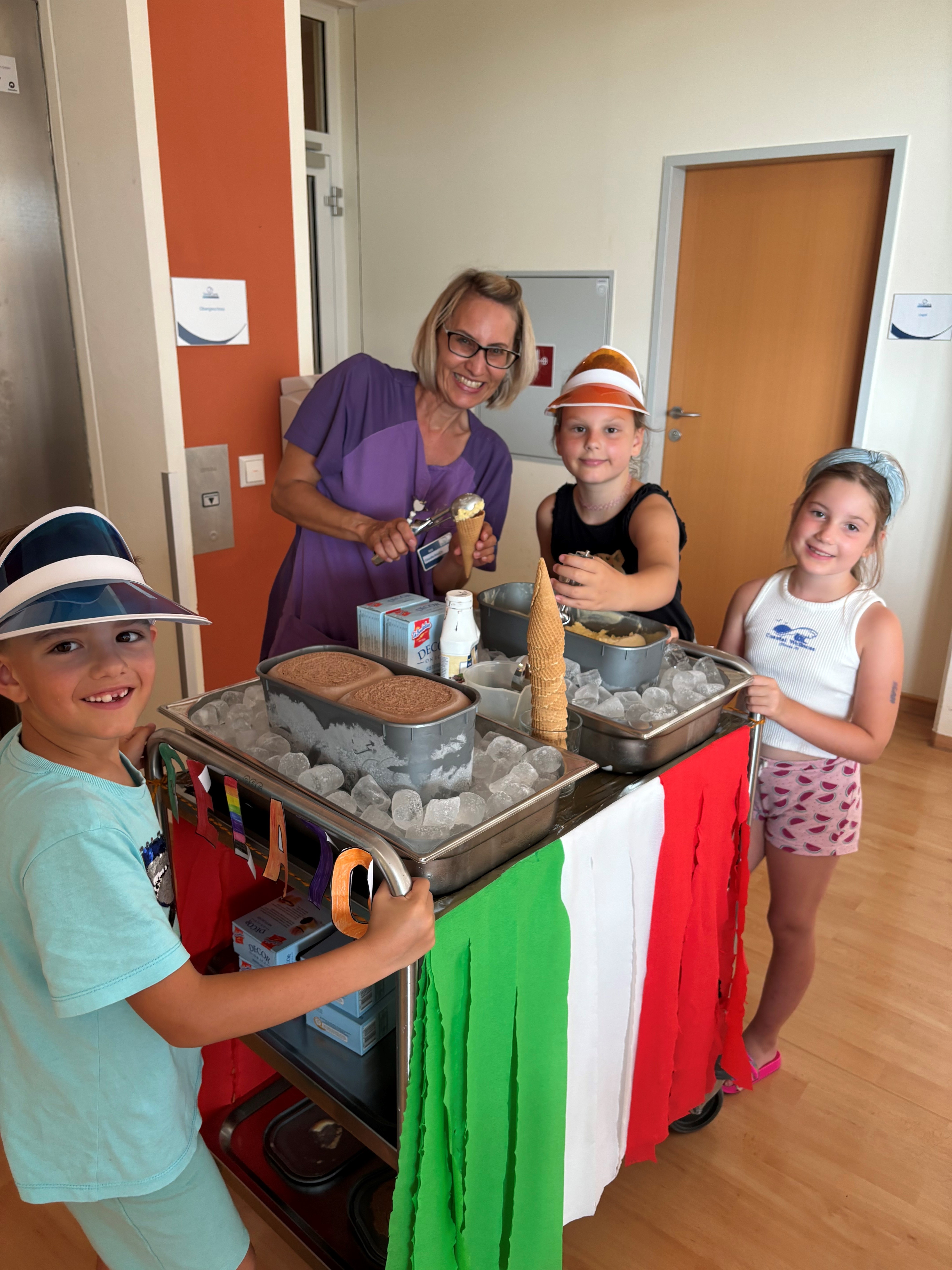 Letzte Woche fand im SeneCura Sozialzentrum St. Veit in der Südsteiermark der Kindertag für die Kinder der Mitarbeiter:innen statt. Als Entlastung für die Mitarbeiter:innen des Hauses wurden alle Kinder zu einem Tag voller abwechslungsreicher Aktivitäten eingeladen. Dieses Angebot des Hauses wurde gerne genutzt und so verbrachten die Kinder einen vergnüglichen Tag. Gestartet wurde mit einem gemeinsamen Frühstück und einem Kennenlern-Spiel, gefolgt von einer Generationen-Olympiade. Später gab es ein gemeinsames Mittagessen mit den Bewohner:innen des Hauses, bevor es am Nachmittag Wasserspiele und Bingo im Garten des Hauses gab. Auch ein erfrischendes Eis durfte an diesen Tag natürlich nicht fehlen. Serviert wurde dies den Senior:innen mit Unterstützung der Kinder. Fürs Abendessen gab es selbstbelegte Pizza für die Kinder und die Bewohner:innen. Es war ein schöner, generationenübergreifender Sommertag, an dem viele neue Erinnerungen geschaffen wurden.