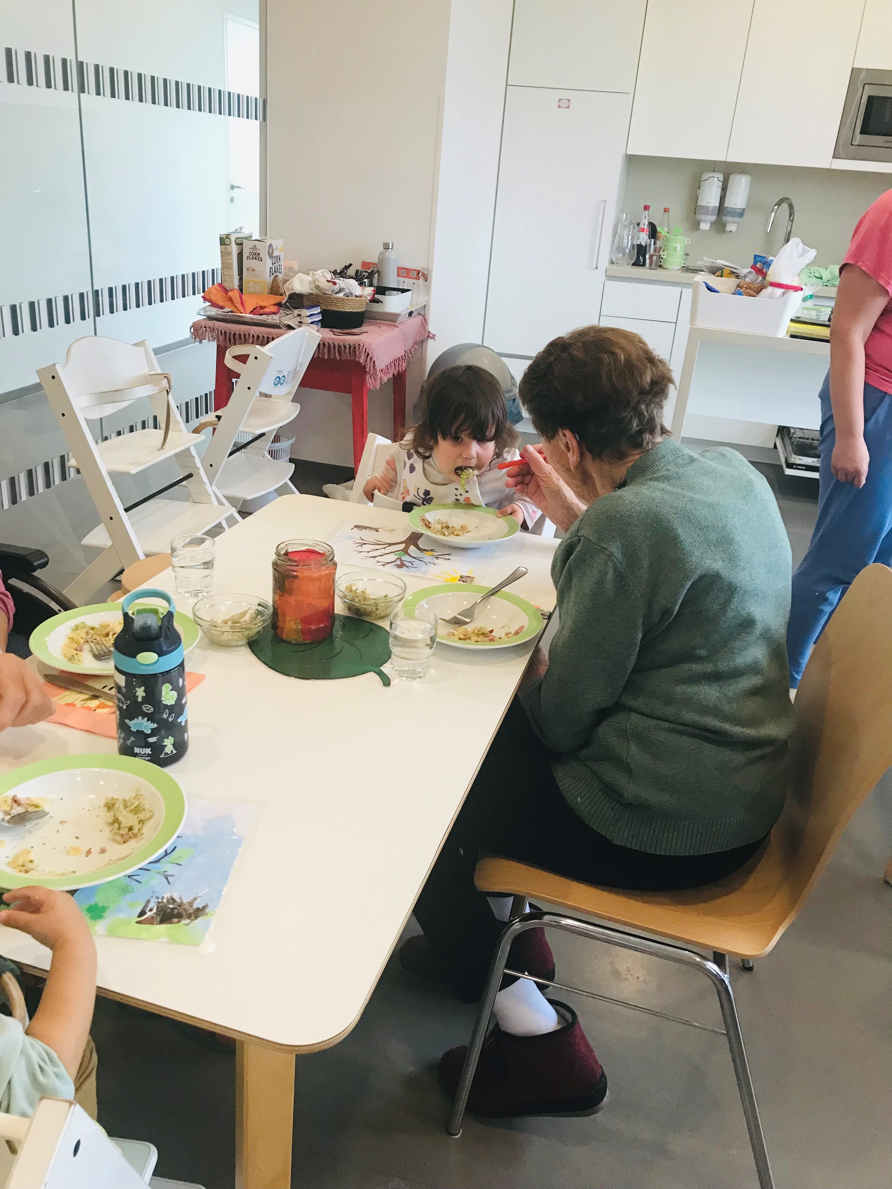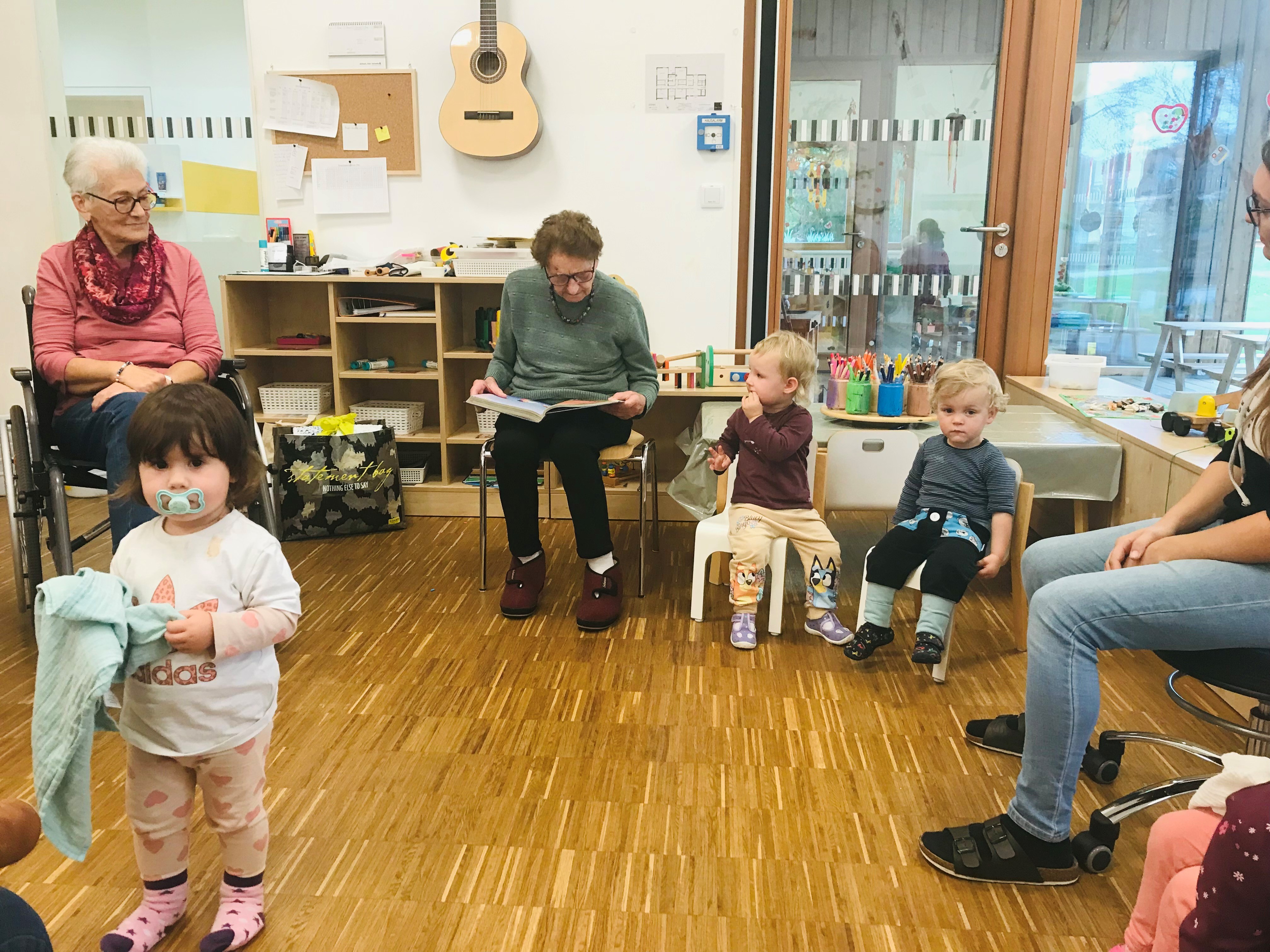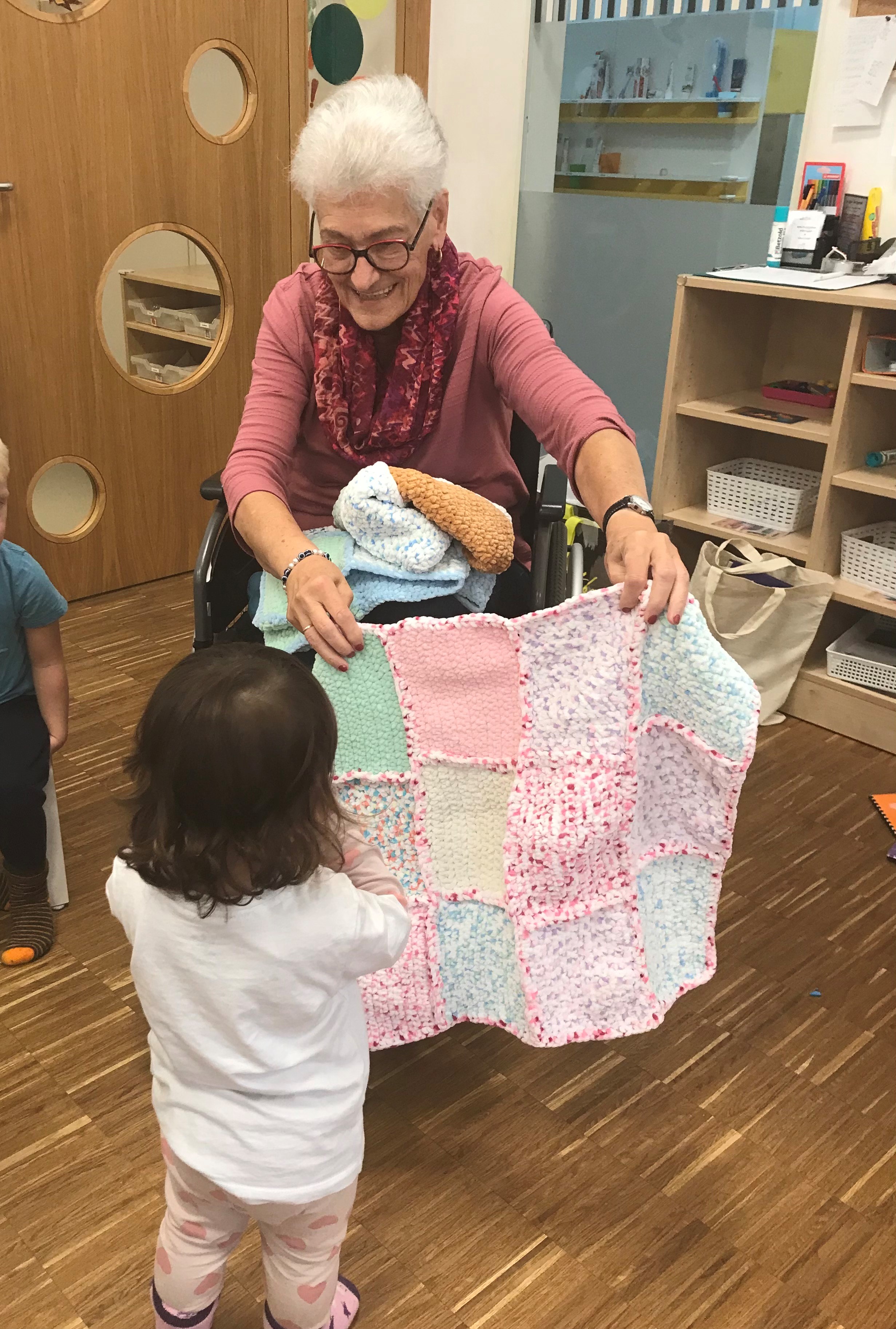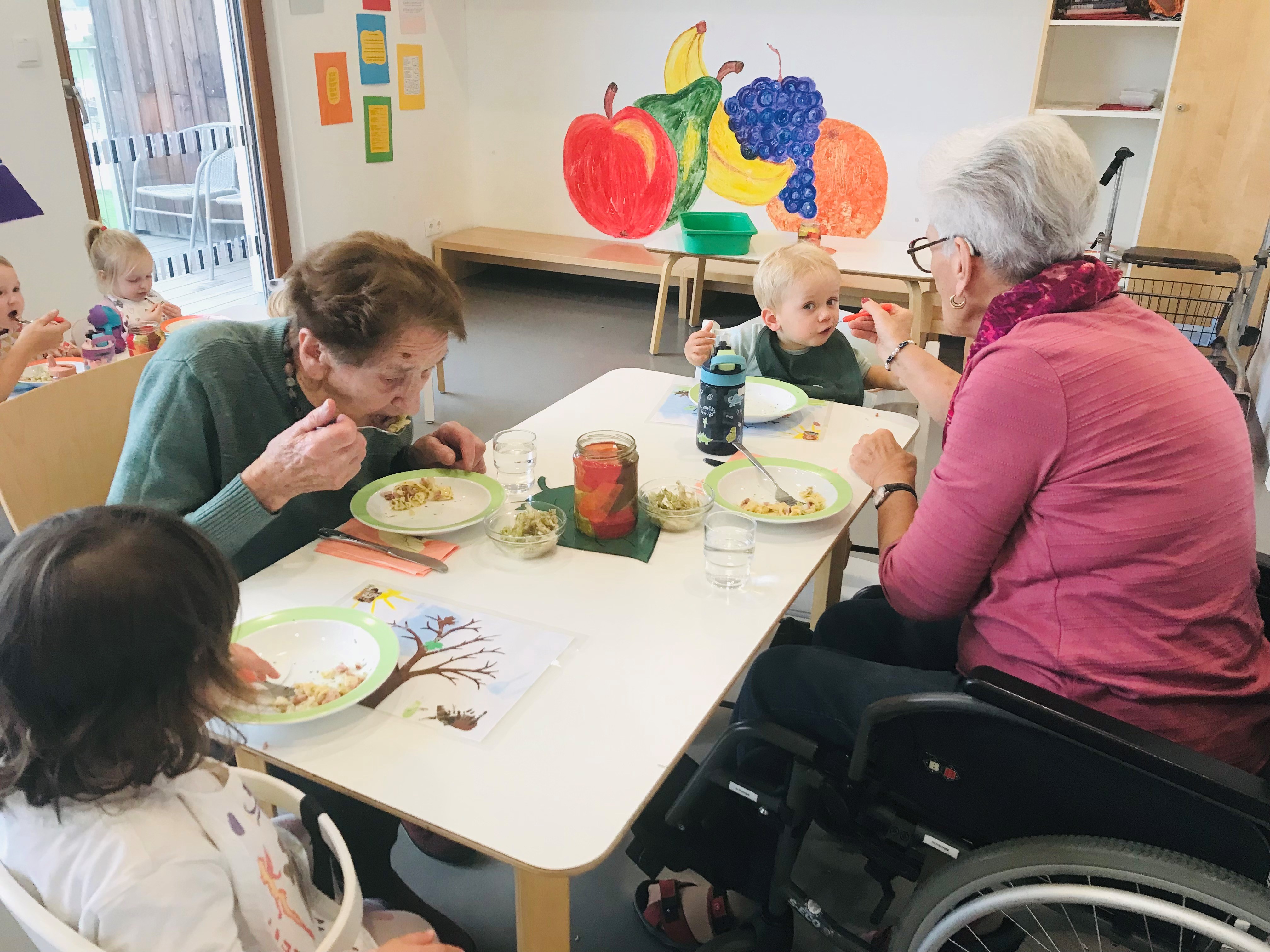 Einige Bewohner:innen des SeneCura Sozialzentrums St. Veit in der Südsteiermark statteten der örtlichen Kinderkrippe einen Besuch ab. Gemeinsam genossen die verschiedenen Generationen ihre gemeinsame Zeit beim Mittagessen, Bücher lesen und Spielen. Außerdem überreichten die Bewohner:innen voller Stolz ihre selbstgehäkelten Kuscheldecken für den Mittagsschlaf der kleinen Freunde. Die Kinder haben sich sehr über die Überraschung gefreut und kuschelten sich direkt in der Leseecke ein. Die gemeinsame Zeit war für Jung sowie Alt ganz besonders und wertvoll.