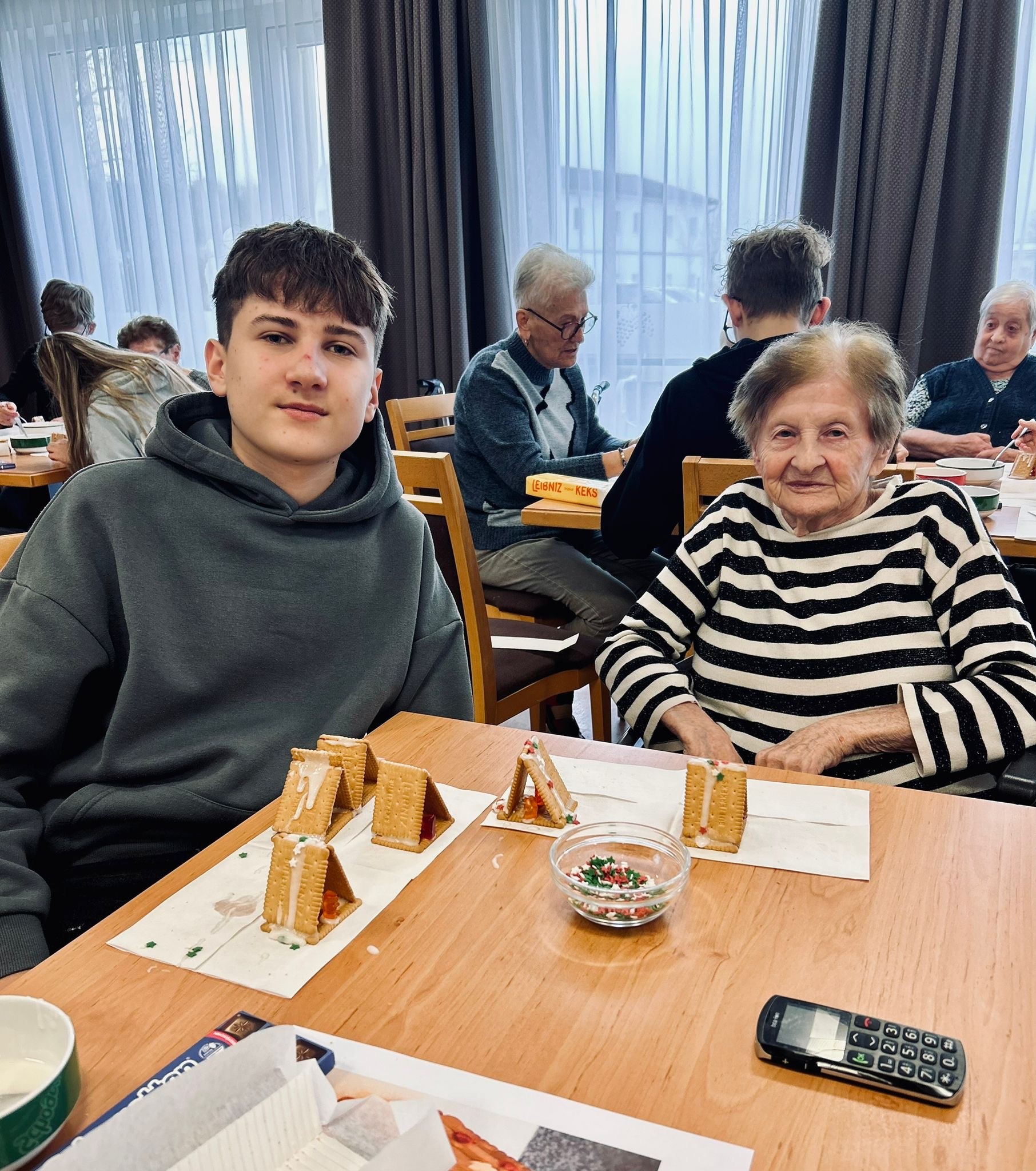 Im SeneCura Sozialzentrum St. Veit in der Südsteiermark wurde unlängst gemeinsam mit den Schüler:innen der Mittelschule Strass fleißig gebastelt – und zwar Butterkekskrippen. Die Bewohner:innen sowie die Schüler:innen gestalteten kreative Krippen, die mit Zuckerguss und bunten Dekorationen verziert wurden. Die weihnachtliche Aktivität sorgte für viel Spaß und Plaudereien zwischen Jung und Alt.