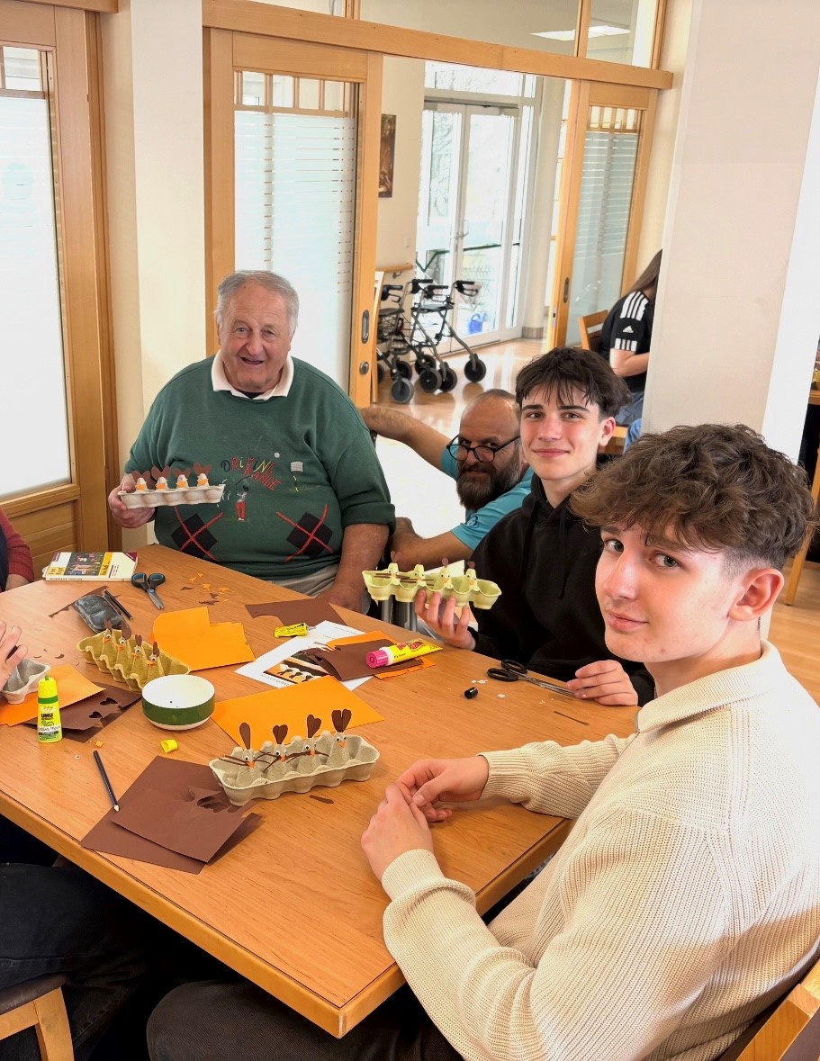 Im Rahmen eines Generationenprojekts gibt es einen laufenden Austausch des SeneCura Sozialzentrums St. Veit in der Südsteiermark mit der 4. Klasse der NMS Straß. Kürzlich besuchte die 4. Klasse der NMS Straß die Bewohnerinnen und Bewohner, um mit ihnen gemeinsam zu basteln und Zeit zu verbringen. Gemeinsam wurde diesmal die österliche Dekoration gemacht. Aus alten Eierverpackungen wurden frühlingshafte Osterhäschenkistchen, die mit Kresse bepflanzt wurden. „Ein schönes vorösterliches Projekt von dem Jung und Alt profitieren.“, so Regina Kahapka, Hausleitung des SeneCura Sozialzentrums St. Veit.