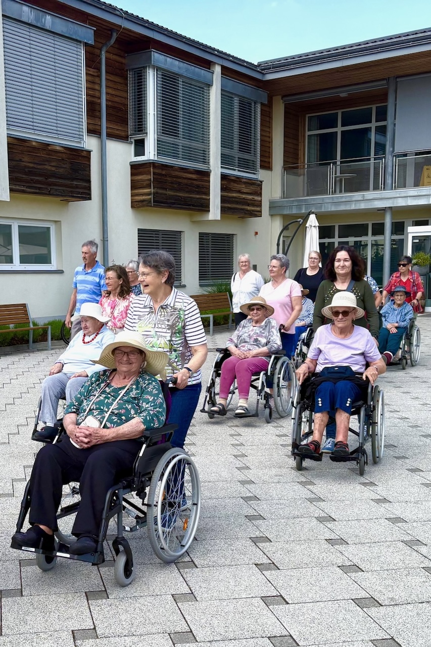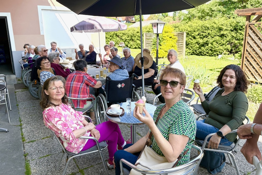 Es war ein Tag wie aus dem Bilderbuch: Die Vögel zwitscherten, die Apfelbäume standen in voller Blüte, und über den Wegen der Südsteiermark lag der liebliche Duft des Frühlings. Inmitten dieser zauberhaften Kulisse machten sich die Bewohner:innen des SeneCura Sozialzentrums St. Veit in der Südsteiermark gemeinsam mit Angehörigen und ehrenamtlichen Helfer:innen auf den Weg zu einer ganz besonderen Rollstuhlausfahrt. Die gut vorbereitete Route war barrierefrei und führte durch ruhige Wege vorbei an Feldern und Weingärten. Für viele war es eine willkommene Abwechslung zum Alltag, ein Stück Freiheit auf Rädern. „Ich habe mich wie auf Urlaub gefühlt – mit dem Wind und dem Sonnenschein im Gesicht. Einfach herrlich!“, schwärmte Bewohnerin Anna Fischer beim gemütlichen Plausch in der Nachmittagssonne. Die Krönung des Ausflugs: Ein Besuch in der nahegelegenen Eisdiele, bei der eine fröhliche Pause mit Erdbeer-, Vanille- und Schokoeis die Herzen und Gaumen erfreute. Es wurde viel gelacht, erzählt und genascht – ein rundum gelungener Ausflug für alle Generationen.