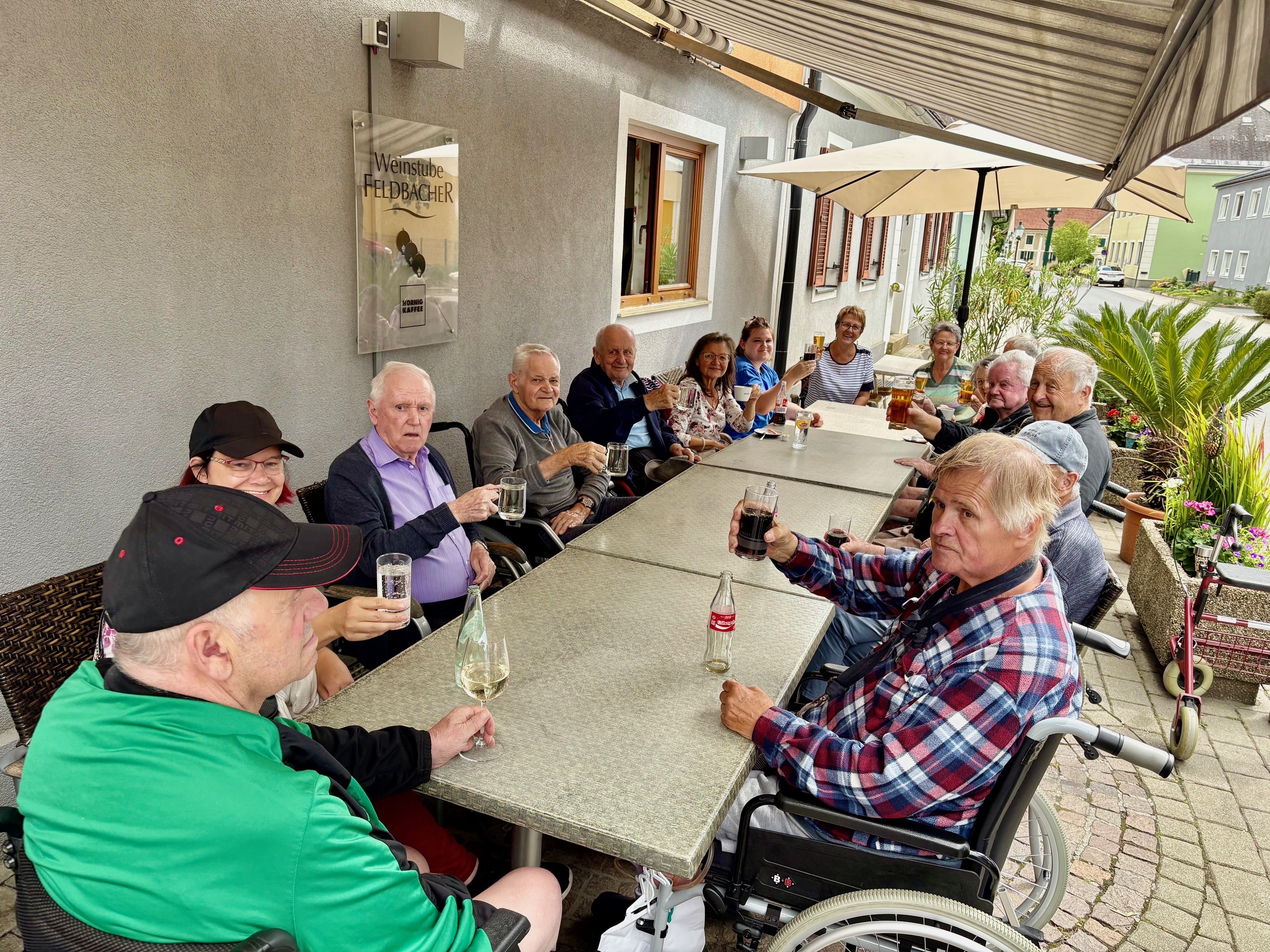 Diese Woche wurde ein ereignisreicher Ausflug mit der flotten Männerrunde des SeneCura Sozialzentrums St. Veit in der Südsteiermark unternommen. In bester Gesellschaft besuchten die Ausflügler die Weinstube Feldbacher in St. Veit. Bei belegten Brötchen und dem ein oder anderen Glaserl Wein konnten sich die Herren ohne die Damen über all die wichtigen Dinge des Männerlebens unterhalten.