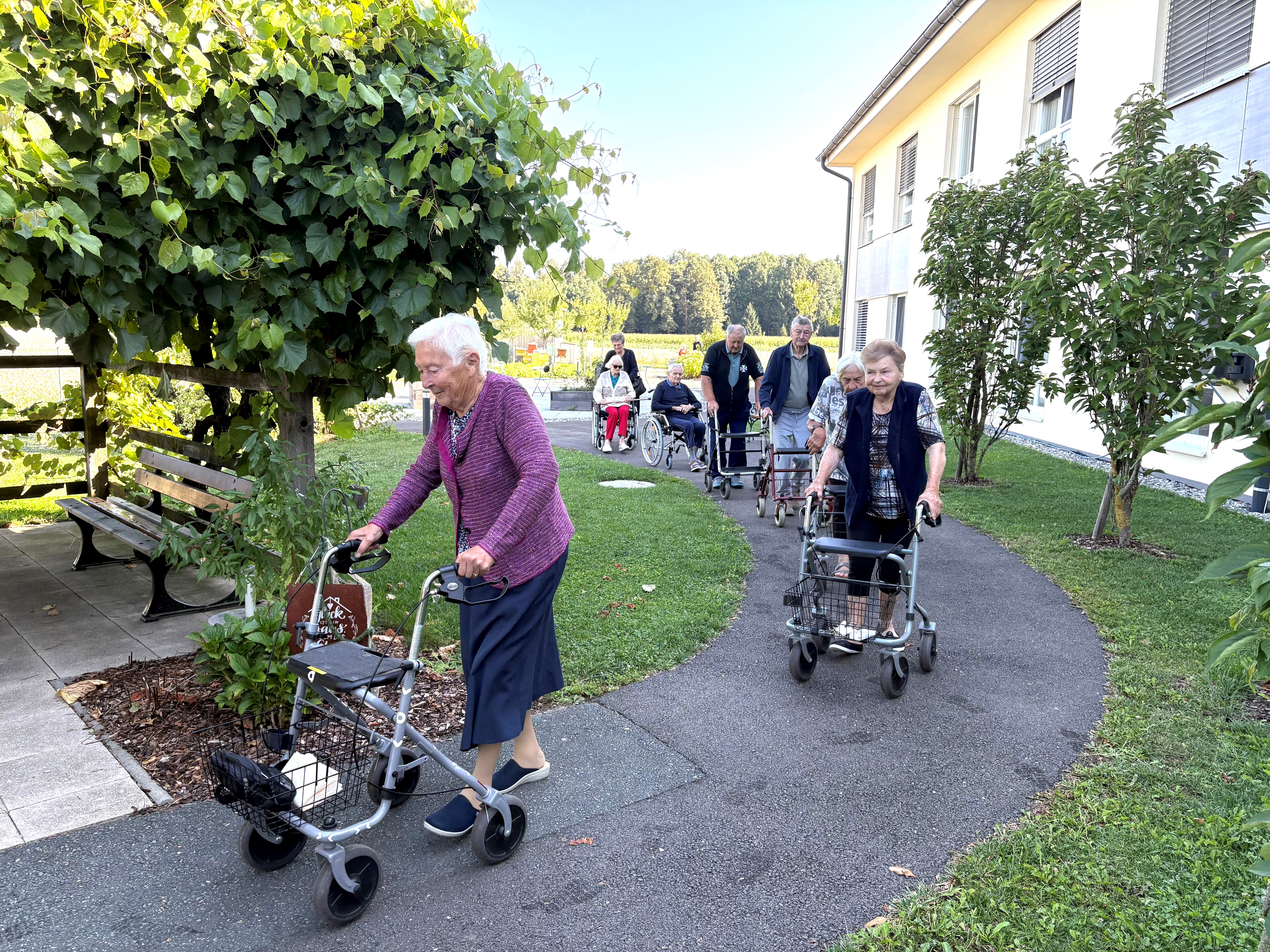 Kürzlich nahmen zahlreiche Bewohnerinnen und Bewohner des SeneCura St. Veit in der Südsteiermark an der Veranstaltung „Fit mit jedem Schritt“ teil. Das Ziel des Projektes war es, regelmäßige Bewegung in den Alltag zu integrieren und die Gemeinschaft zu fördern. Dabei wurden kleine Spaziergänge mit Walking-Stöcken bzw. mit dem Rollator durch den Garten des Hauses durchgeführt.