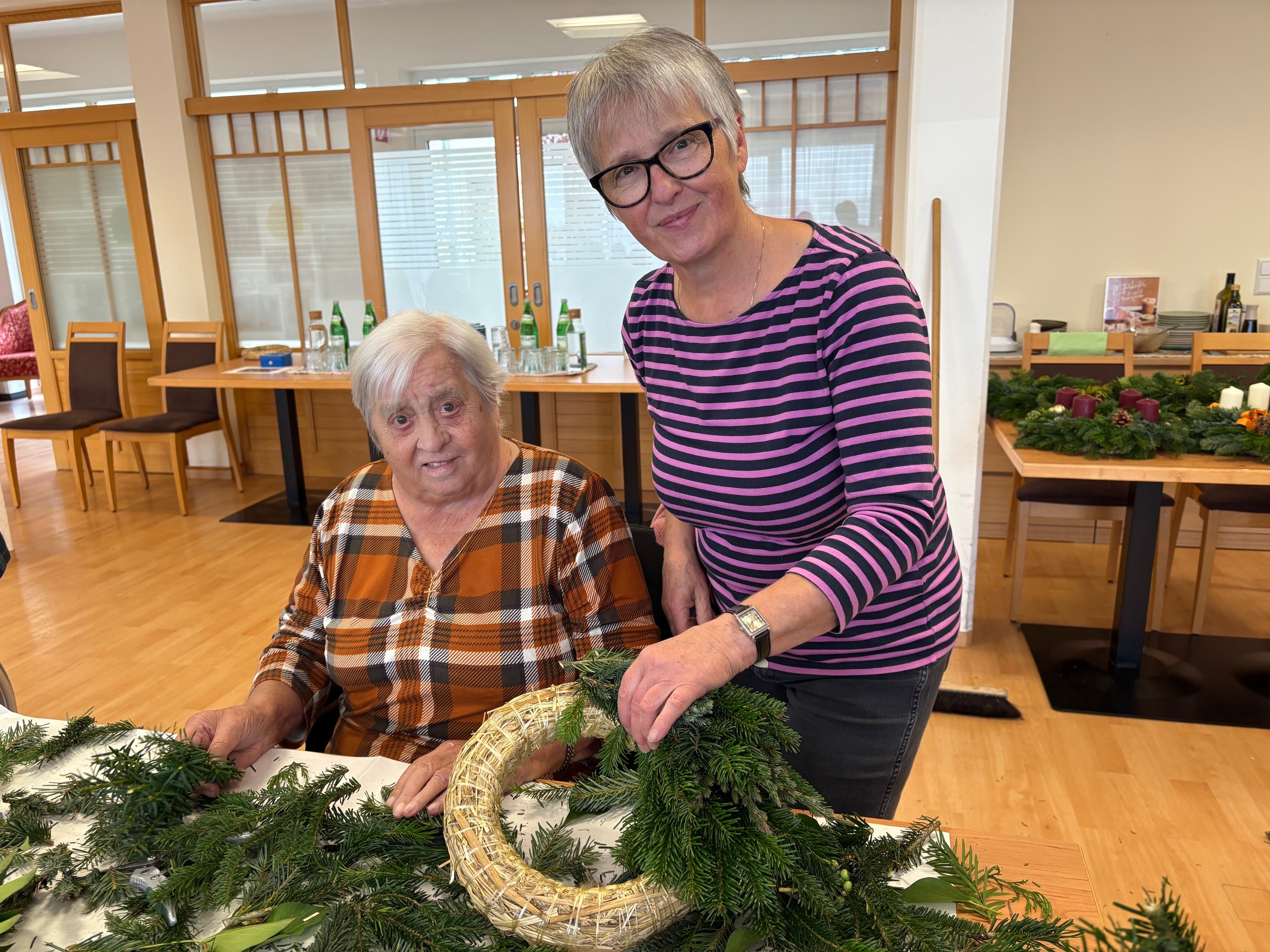 Die Vorweihnachtszeit ist bei den Bewohner:innen im SeneCura Sozialzentrum St. Veit sehr beliebt. Gemeinsam werden Traditionen gelebt und man bereitet sich mit vielen kleinen netten Aktivitäten auf das Weihnachtsfest vor. Zu Beginn der Vorweihnachtszeit fand ein gemeinsames Adventkranzbinden mit den Angehörigen statt, um die finalen Kunstwerke im Haus aufstellen zu können. Mit viel Eifer und Freude haben sich die Bewohner:innen und Angehörigen in die Arbeit gestürzt und es sind wunderschöne Kränze entstanden. Dabei wurde nett über alte Zeiten geplaudert und gemeinsam gelacht. Eine schöne Tradition, die großen Anklang fand.